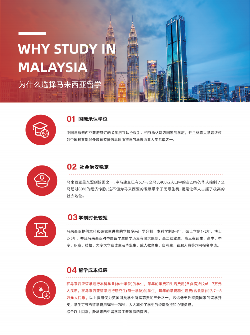 综合以上因素,赴马来西亚留学是工薪家庭的首选。