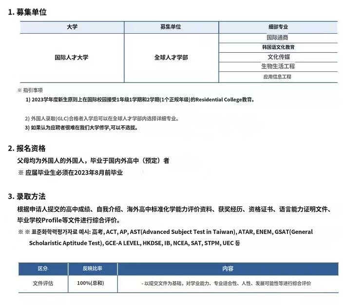 7、申请者本人拥有韩国国籍,或申请者本人不具有韩国国籍但其父母中至少一人拥有韩国国籍, 请参考学院官方招生简章“第二类申请人”相关政策