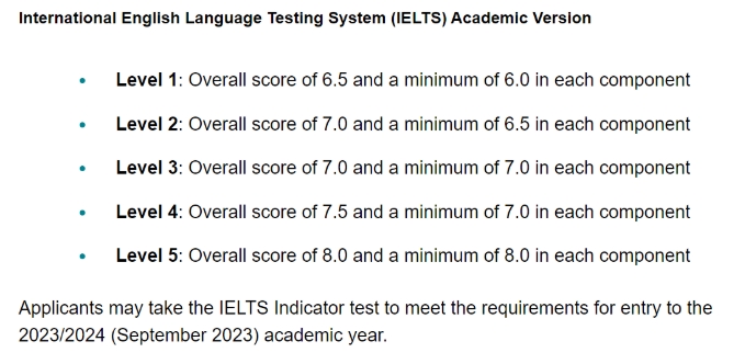 注:申请者须提交学术类雅思考试成绩或者UKVI